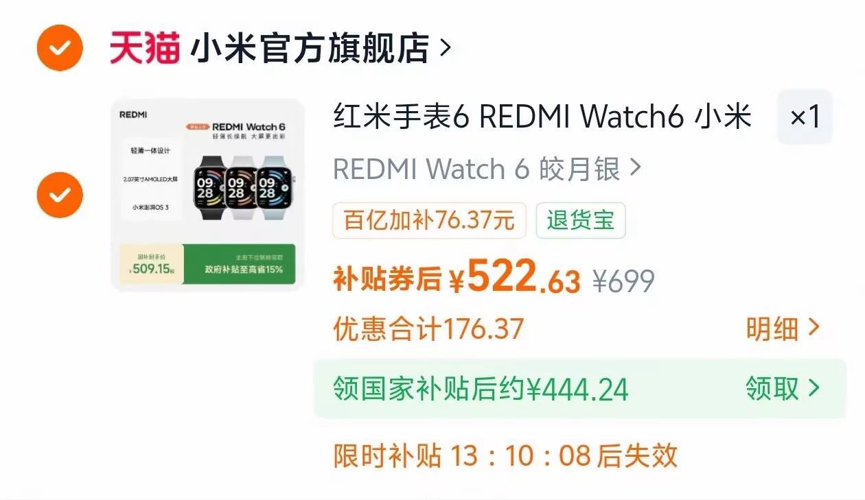 红米 watch6 手表 叠国补【445】