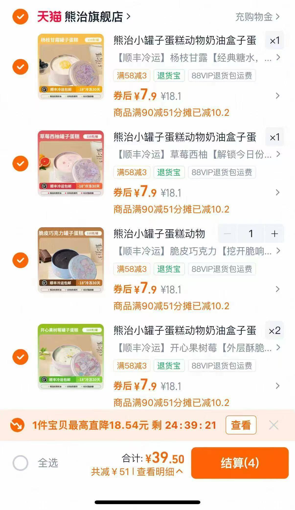 熊治铁罐子奶油蛋糕110g 拍3罐 39.5元