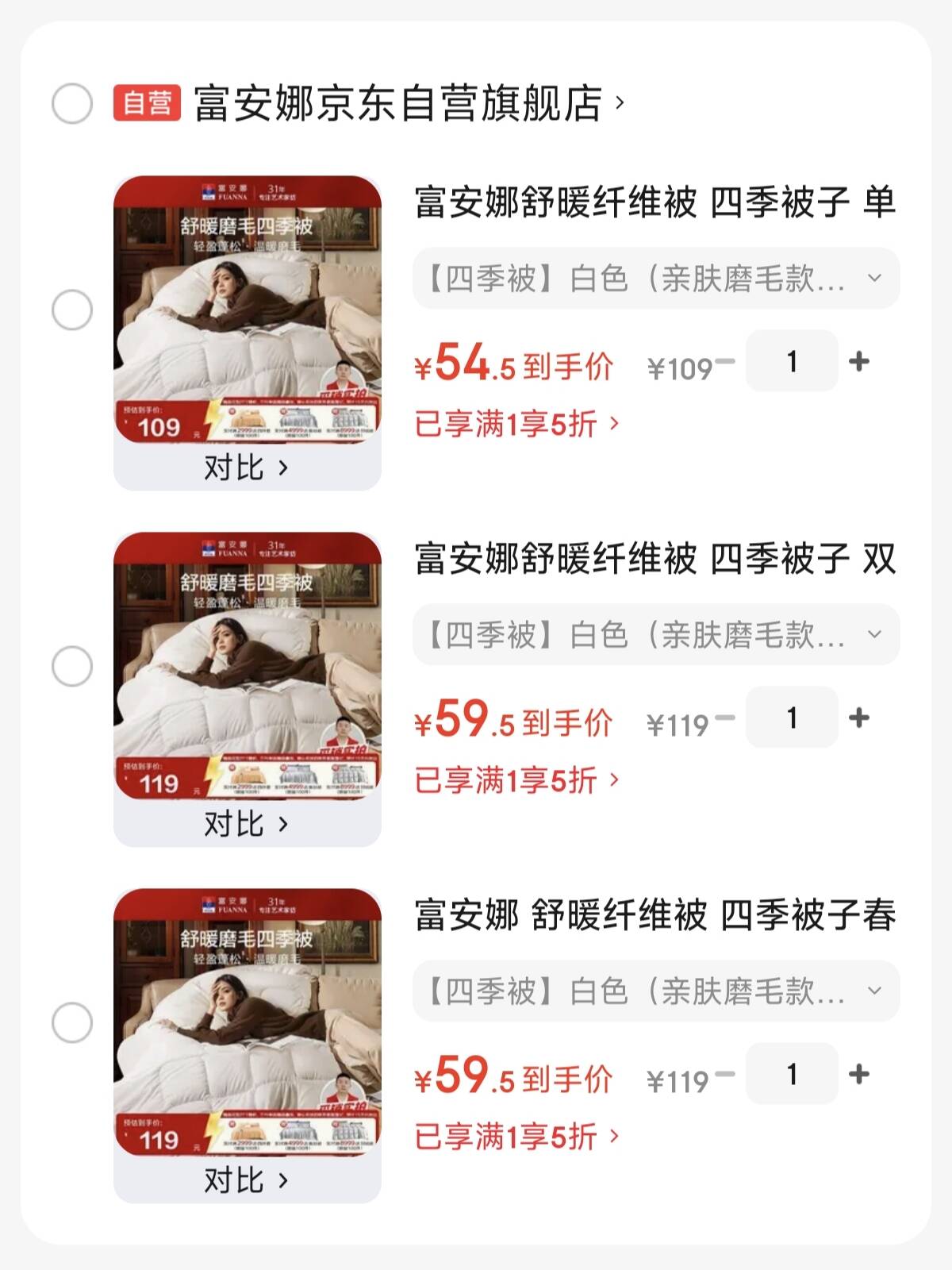 富安娜纤维四季被五折 54元3.2斤 小152*210cm