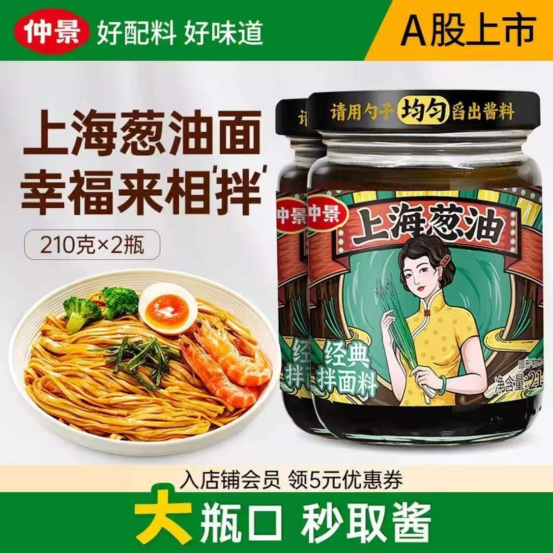 仲景老上海葱油汁210g*2瓶 13.9元,仲景香菇酱168g*2瓶 13.9元