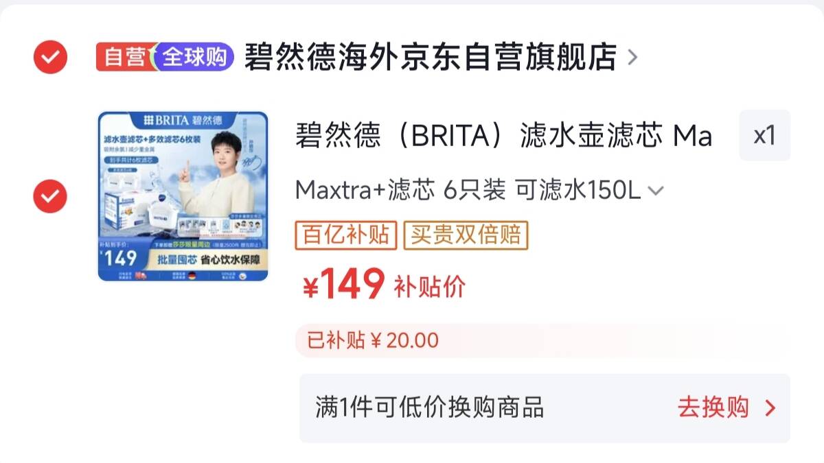 碧然德滤水壶滤芯149元