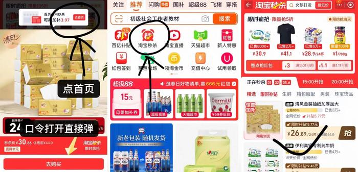 ③回桃宝主页进【桃宝秒杀】
