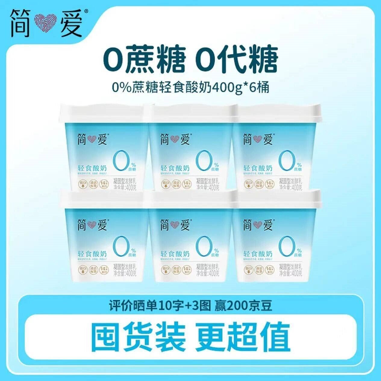 简爱 0蔗糖大桶酸奶400g*6桶
