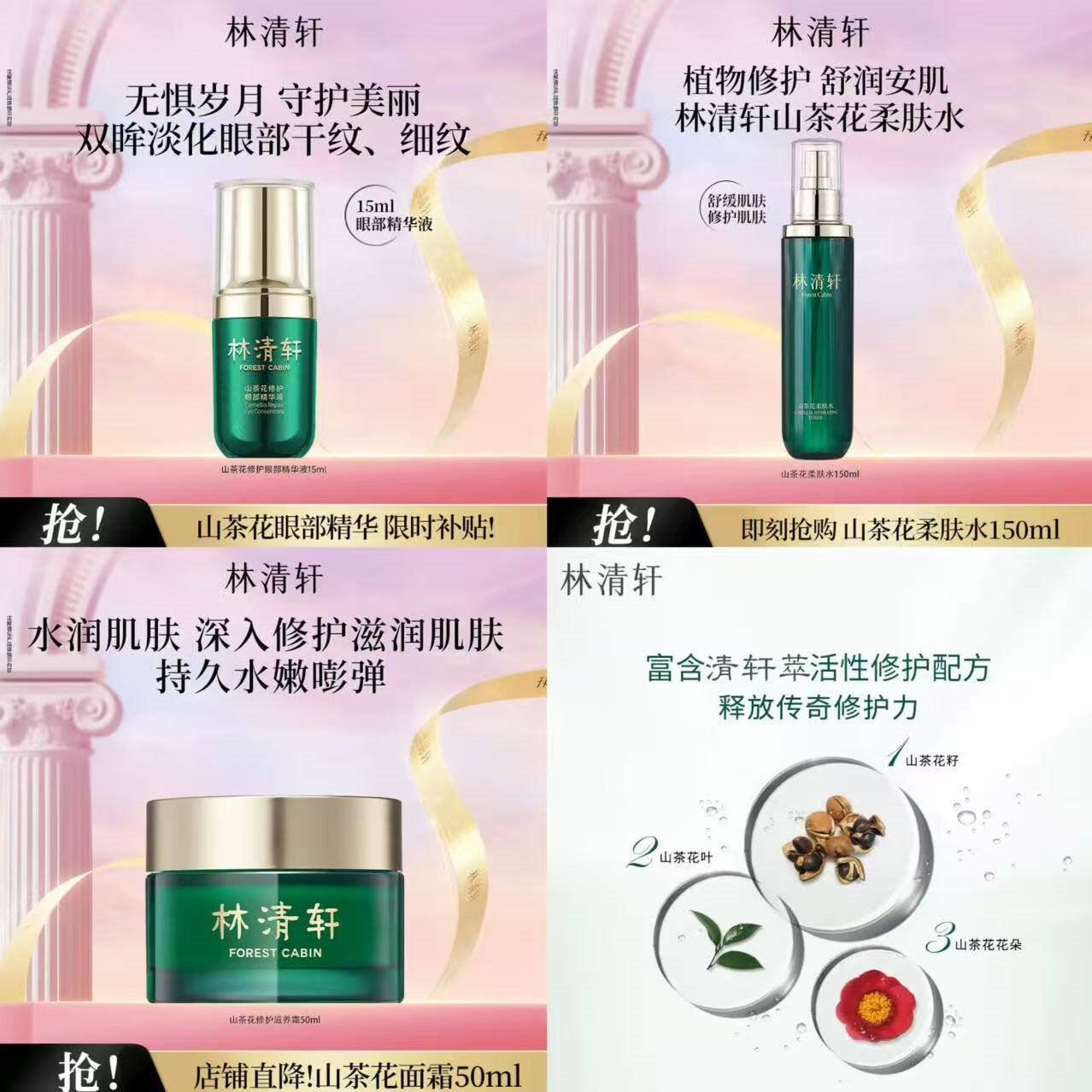 林清轩山茶花眼部精华液15ml 52元,林清轩柔山茶花肤水150ml 62元