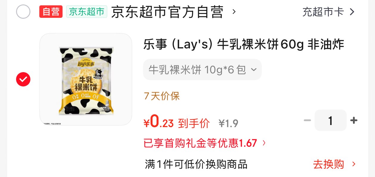 乐事新西兰如粉牛如裸米饼60g 0.23元