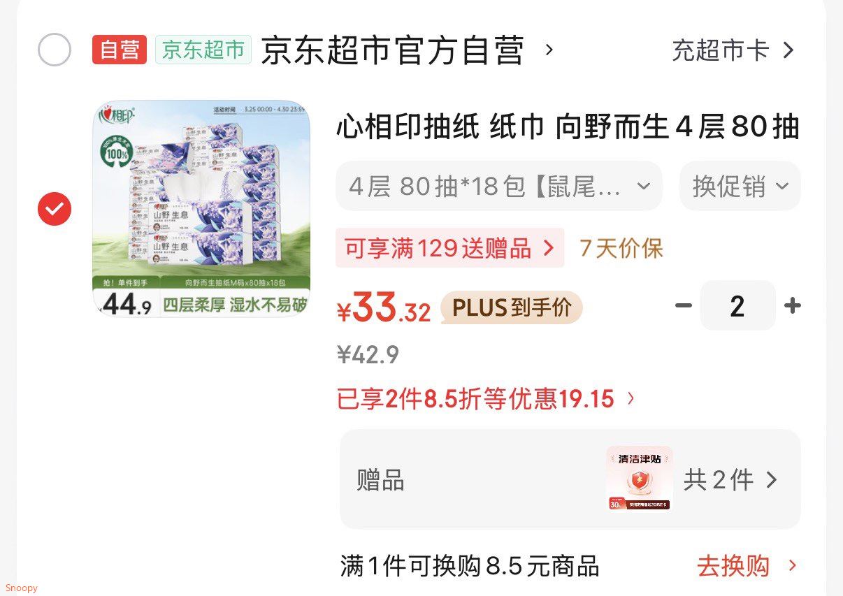 心相印向野而生4层80抽*18包M码 拍2件 66.6元