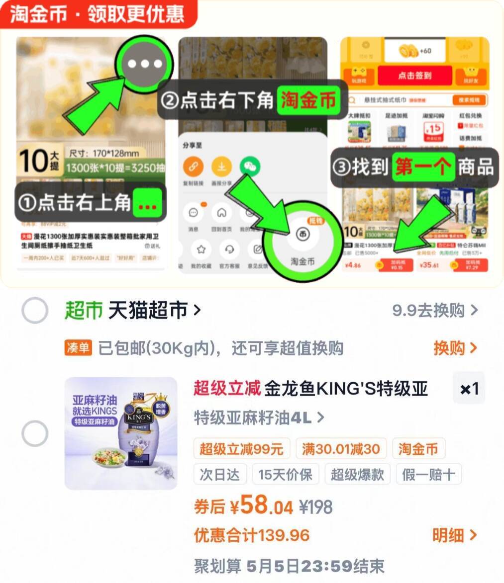 如图叠琻币拍58元 琻龙鱼 特级亚麻籽油4L 采用头道初榨工艺锁鲜营养 %亚麻酸