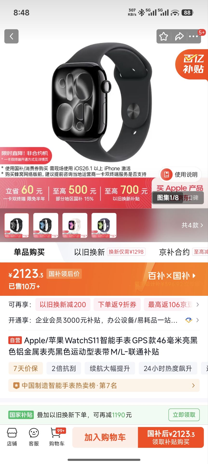 Apple/苹果WatchS11智能手表GPS窽46毫米 2123.3元