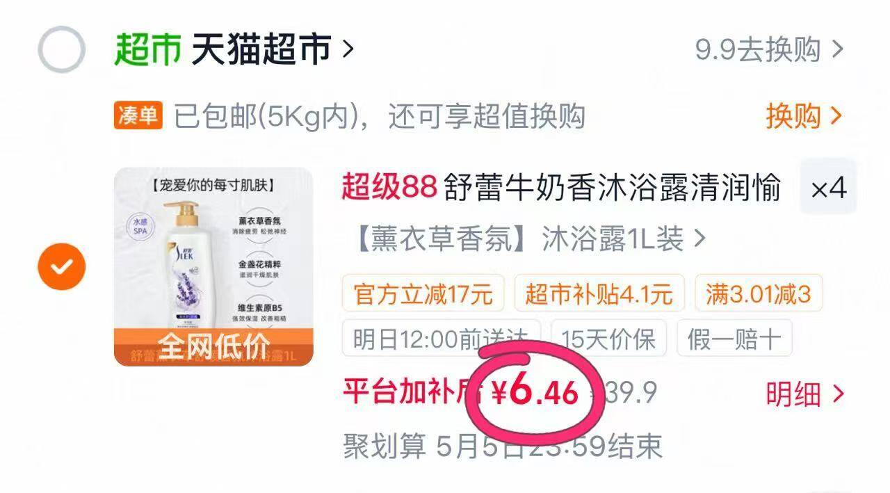 舒蕾沐浴露4瓶,到手25