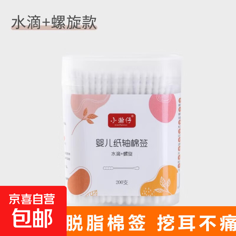 棉签婴儿掏耳宝宝专用挖耳勺新生幼儿童掏耳朵鼻屎细小头棉棒双头 婴儿棉签水滴+螺旋1盒200个