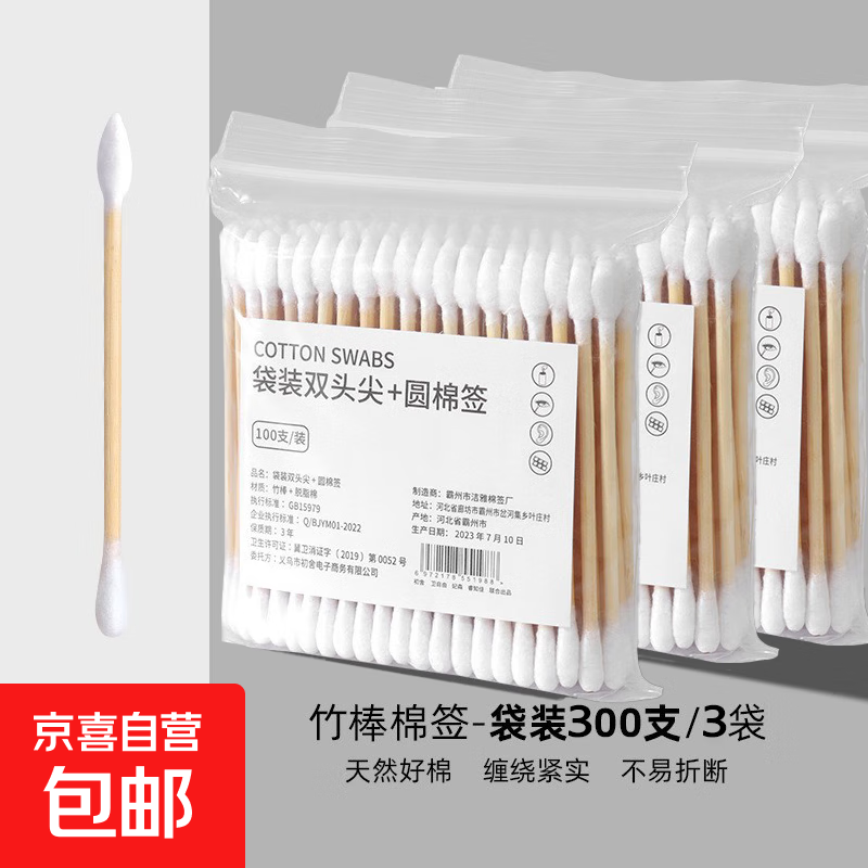 双头棉签掏耳朵专用不掉毛清洁木棒批发一次性化妆用棉花棒 约300支棉签【3袋装】
