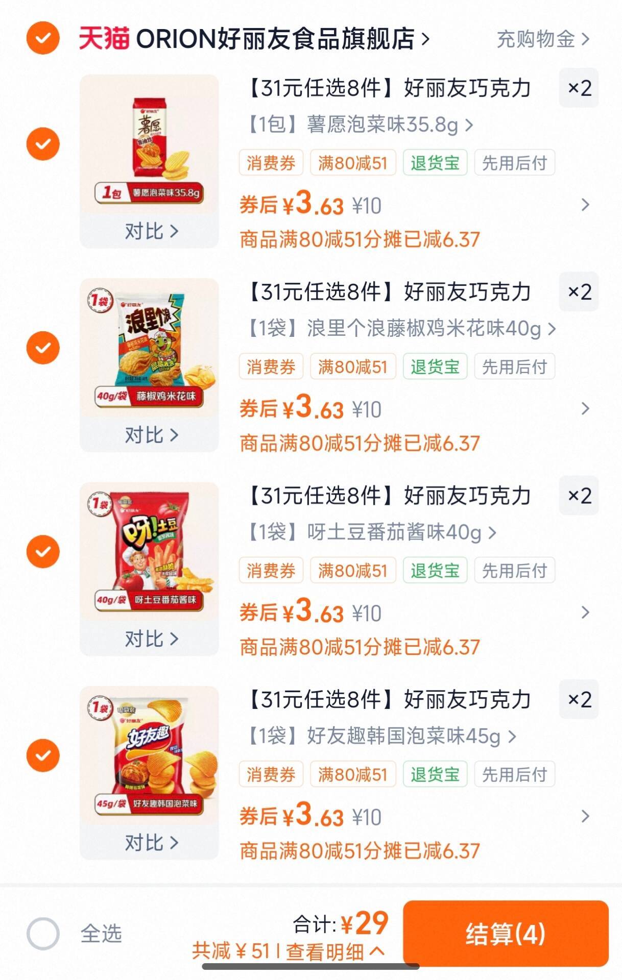 好丽友薯片零食大合集任选 件29元,折3.6/件