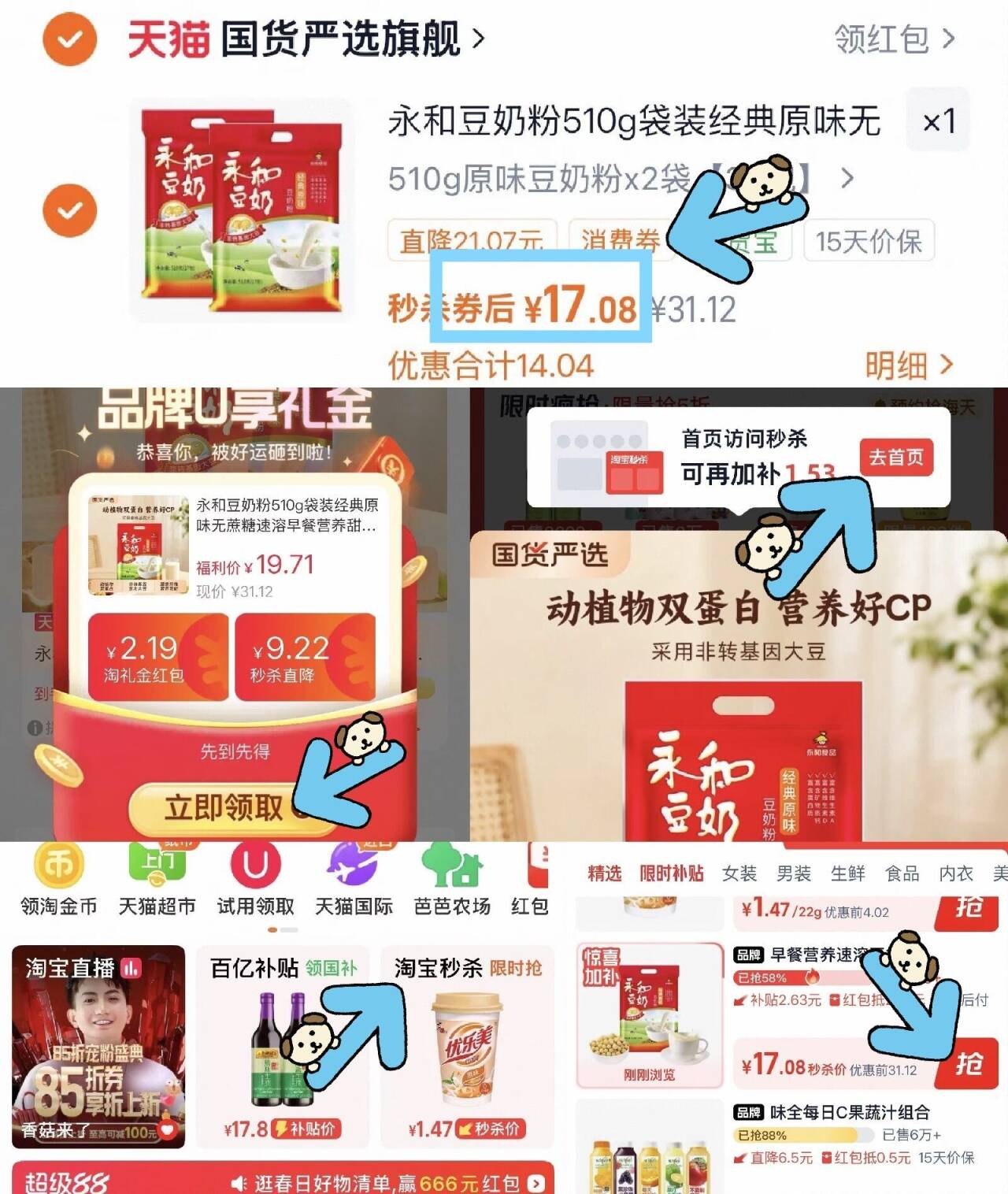 永和豆浆豆奶粉共510g*2袋 17元