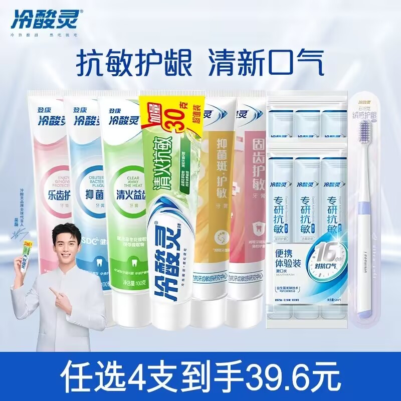 冷酸灵晶盐爽白抗敏感牙膏单只100-140g的大只装任选4件 赠牙刷2支